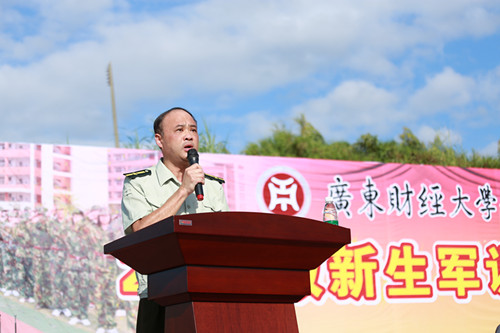 本报讯(记者余润熹)9月12日,广东财经大学华商学院2014级新生军训动员大会于在田径运动场举行。学院党委苏宁书记、邓基泽副院长、支戈壁副院长、王中德副院长、郭银华副院长、军训团刘辉团长及各系主任、行政部门负责人出席了本次大会。大会由邓基泽副院长主持。