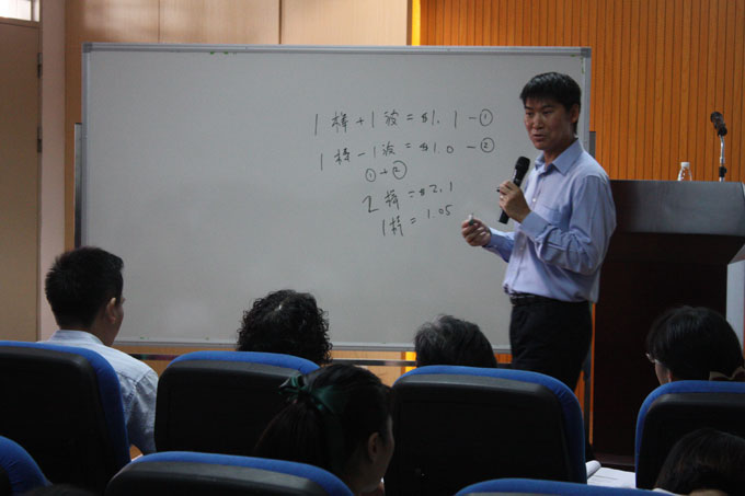 2014年8月27日,香港大学专业进修学院陈耀光博士来我院为青年教师授课。授课前,郭银华副院长发表讲话,对陈博士的到来表示热烈的欢迎。近60名会计系、经济与金融系的教师参加了为期一天的课程。