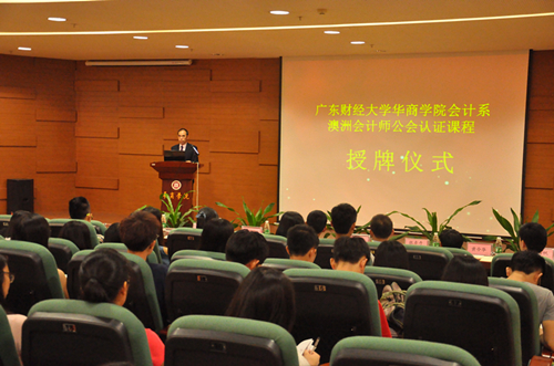 仪式上,郭银华教授代表我院对学院会计系课程通过澳洲会计师公会认证表示热烈的祝贺,并勉励同学们好好把握为将来的职业发展争取更多的机会。