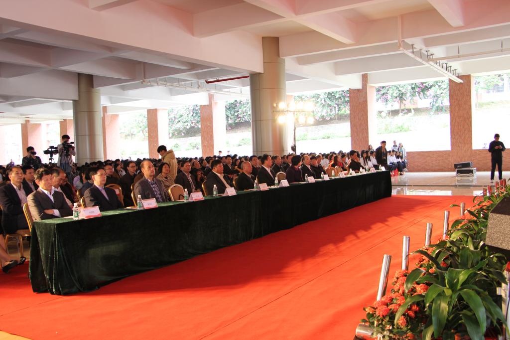 教育集团董事长廖榕就,执行董事陈练瑛,华商学院院长陈玉川,教育集团副总经理、华商学院副院长廖伊曼等领导及师生代表共1400人参加。仪式由华商学院副院长郭银华主持。