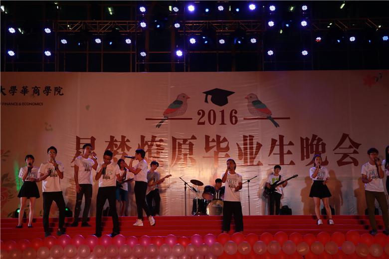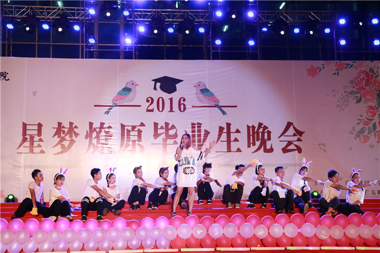 晚会在院艺术团乐器演奏和现代舞《飞跃》中火爆开场,很快带动了场下观众的热情。随后,在拉丁舞《Waiting for you》的动感舞姿中,本次晚会掀开了它的第一个篇章——“赤心启”。一曲舞尽,台下掌声如雷,响彻广场。紧接着,校园十大歌手为毕业生带来歌曲《All of youth》,深情的歌声,唱出了对毕业生的未来生活的祝福,也代表了毕业生对学院的感激之情和对老师的感谢和祝福。而公管系艺术团用曼妙的舞姿向大家诉说一个关于“离别与开始”的故事,尽管离别总是充斥着凄凄的伤感之意,但也意味开始一段全新人生。