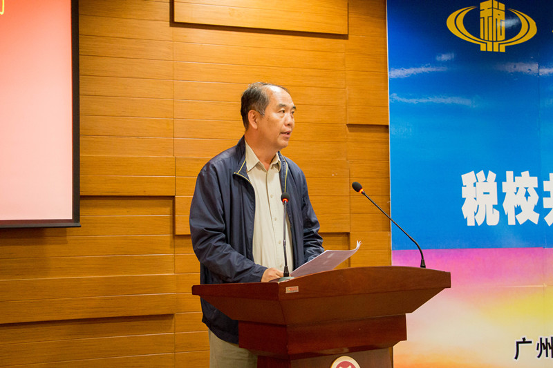 马玉珍教授首先上台致辞。她回顾了2016年三局在我院建立税收宣传教育基地、合办首届华商学院税收知识大赛、华商学生到增城国税实习等税校合作的历程,介绍了华商学生2016年考公务员进入税务系统的情况,充分肯定了校税协同教育平台的重要作用。同时强调了税收宣传活动是让社会公民了解和掌握税收知识的重要形式,是学校教育的重要补充。能让在校学生牢固树立纳税意识,知道生活和工作要有底线,学财会要遵纪守法,做合格公民。三局在华商设立税务普法教育基地和干部教育培训基地,必将使得校税协同育人平台开启了新的篇章,助航学生成就蓝色的梦想。