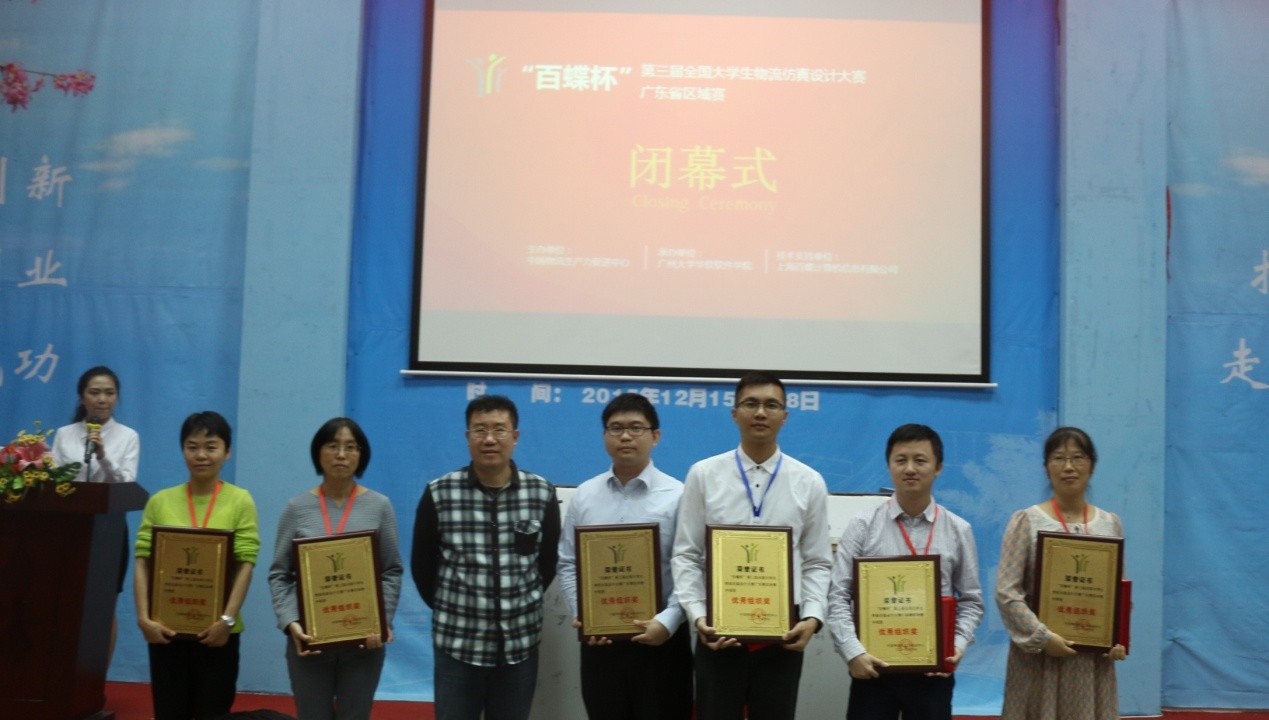 “ 百蝶杯”第三届全国大学生物流仿真运营设计大赛广东省赛是由中国生产力促进中心发起并主办的一项以促进在校物流专业大学生学习与实践能力提升的赛事活动。大赛面向全国物流及其相关专业的本科大学生,通过对虚拟仿真的物流企业进行运营和研究,在探索和解决一系列物流生产实际问题的比赛过程中,提高大学生的实际动手能力、组织管理能力、策划设计能力;并在人才培养的模式,教学方法和内容方面做出了有效的尝试,促进了物流专业教学的改革;同时也为广大老师和学生搭建起一个交流学习的互联网平台和综合学习的社区。通过本项赛事为促进物流教学和人才培养做出一些应有的贡献。