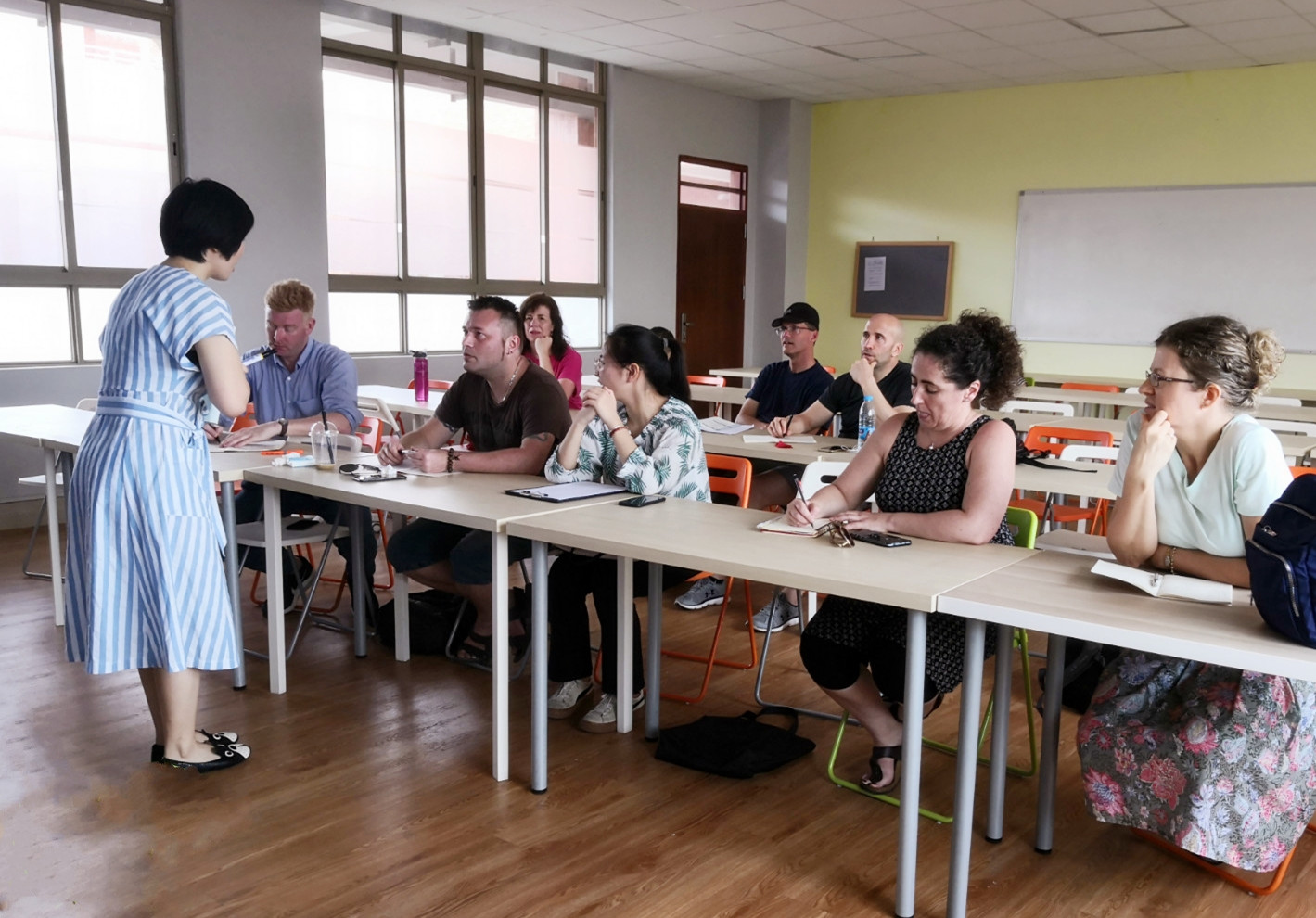 该课程于4月23日下午正式开课。授课老师为我校文学院文学系汉语国际教育专业教师李雅洁老师。李老师采用显浅易懂、情景结合的教学方式使外教们对学好中文非常有信心。