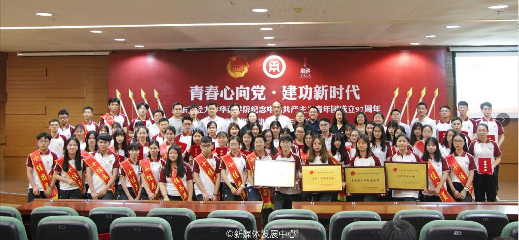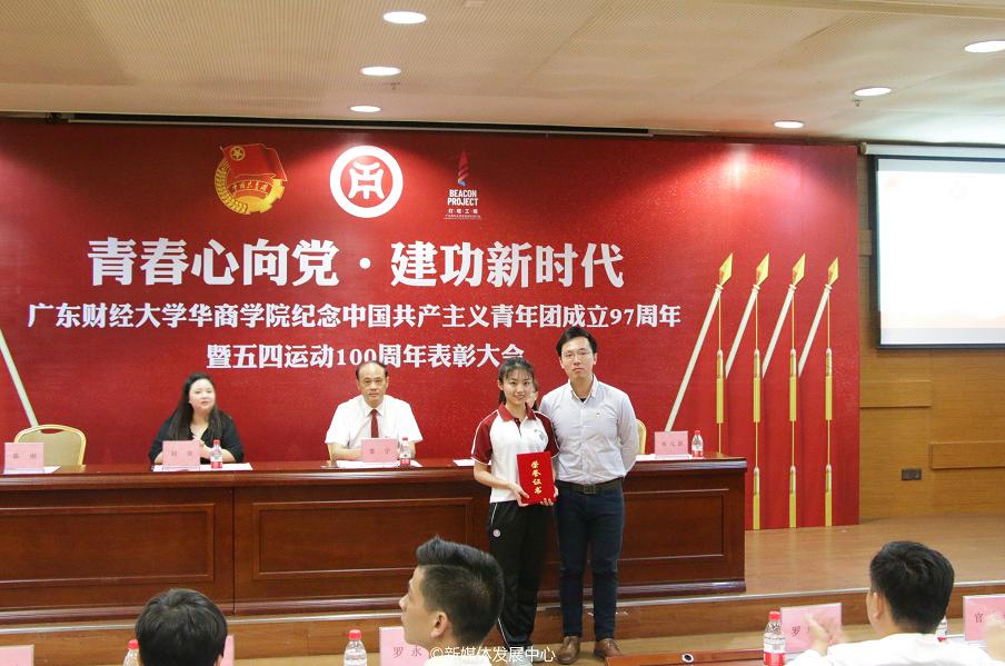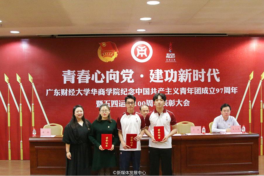 伴随着庄严的团歌,广东财经大学华商学院纪念中国共产主义青年团成立97周年暨“五四”运动100周年表彰大会圆满结束。