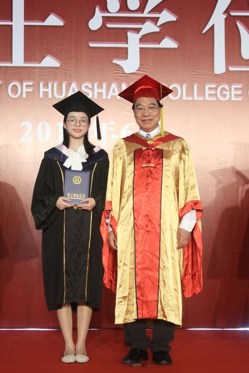 ▲校长陈新滋院士为学生授予学士学位