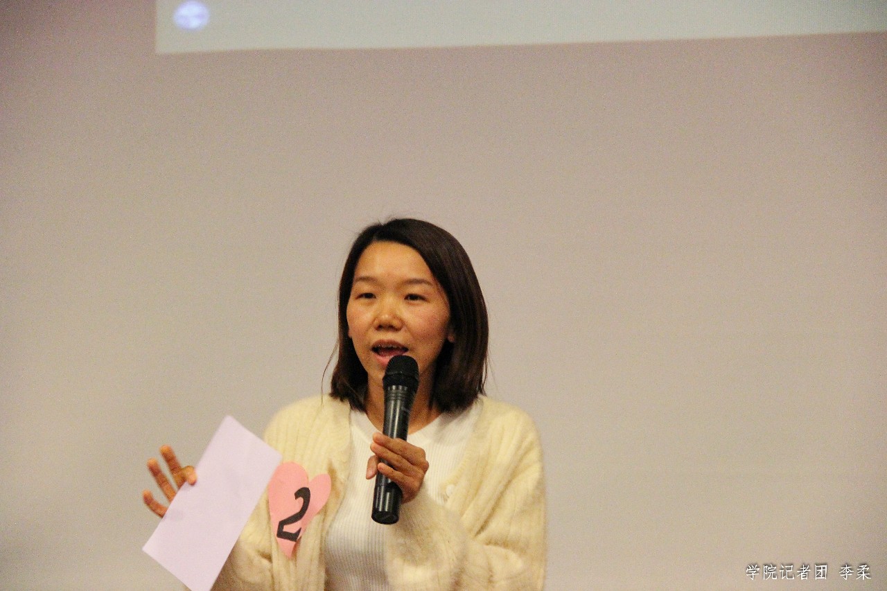 来自文学院教育学系的文华玲老师结合自身,借进博会主题,表达了对国家发展蒸蒸日上的自豪和不断严格要求自我,为国家发展贡献教师力量的热情。来自经管学院的张锐嘉老师则通过自身经历,展开了对团队精神的精彩阐述。她提到,团队精神的培养在大学生活中也是尤为重要的一课,它不仅能帮助个人完善自我,成就自我,不断发现他人身上的闪光点,更能通过持续的交流和沟通,促进任务的完成,实现从学校到社会的顺利过渡。