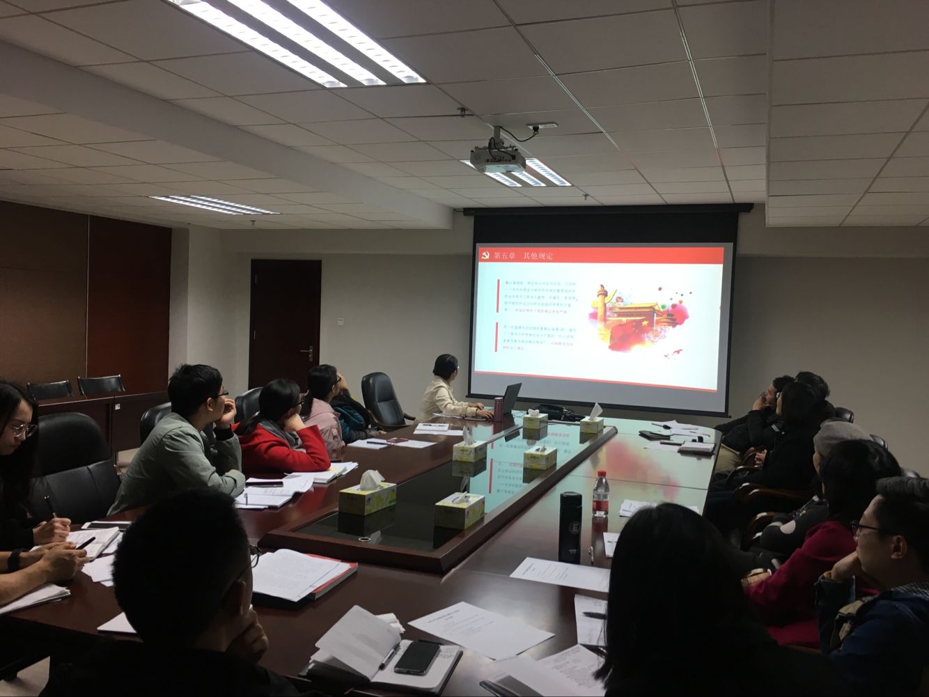 随后,支部书记金伟娇同志组织全体党员深入学习《中国共产党纪律处分条例(2018修订)》,希望大家时刻牢记使命,要具有作为中国共产党党员的高度思想觉悟,严格要求自己。接着,支部书记代表支委会作2019年“不忘初心、牢记使命”主题教育工作总结报告并代表支部领导班子做支部工作的检视剖析。总结支部工作开展情况与存在问题、剖析原因,并对党支部下一步的工作提出了期望:全体党员需加强学习党建理论知识和关注时政新闻,提升政治素养;加强支部内的组织纪律;加强党建理论知识与实际工作的充分融合;加强支部党员发挥模范先锋带头作用。
