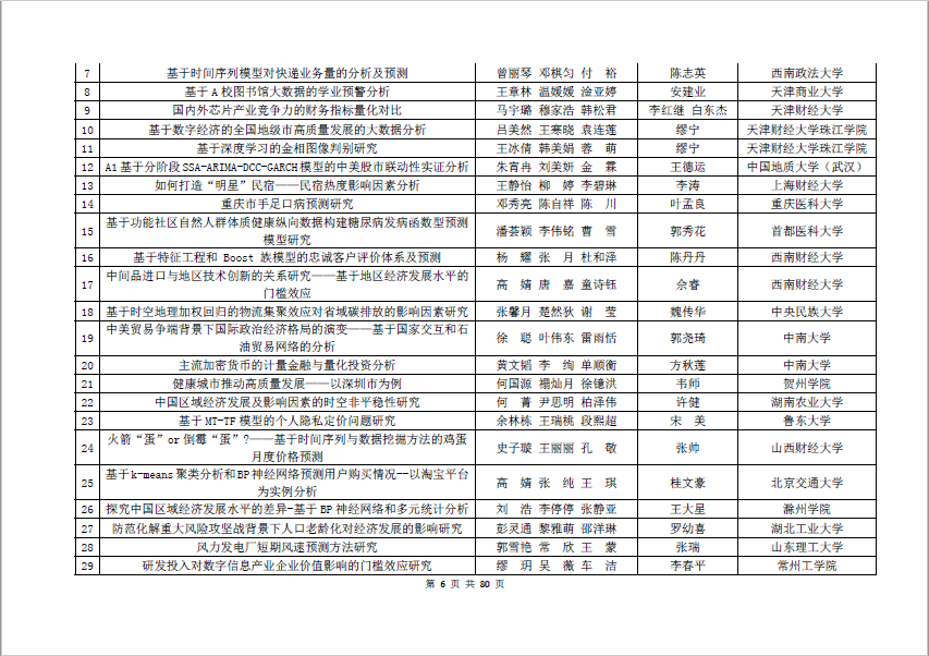附全国统计建模大赛统计建模类--本科生组获奖名单