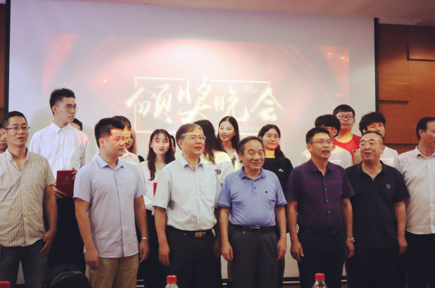 领导老师及获奖学生上台合影