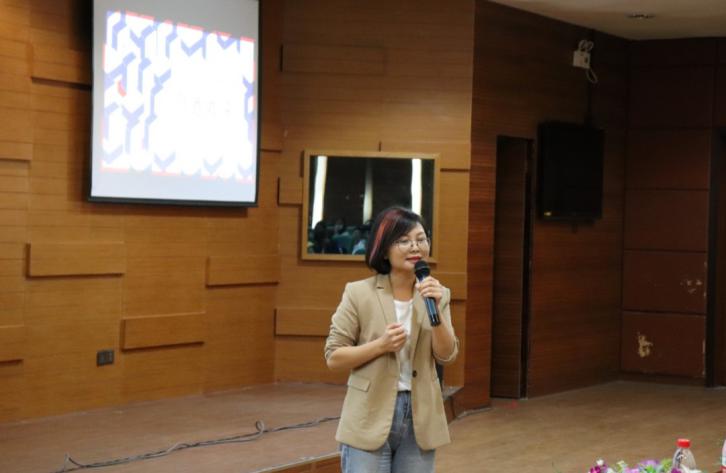 随后朱伟强总监以自己的故事为起点,开始了他的分享。朱伟强总监指出,好的创意应该先从设定目标开始,提前制定目标是非常重要的。他进一步认为,找准方法是进行创意练习的前提和基础,进而要刻意练习,从一个中心点连接上万个创意,在练习的过程中积累自己的创意库。朱老师表示,只有多参加比赛才能打响自己的创意招牌。同时,他向同学们表达了祝愿,希望同学们能在创意的路上实现梦想。随后,朱伟强总监与现场学生展开了互动,认真详细的回答了学生所关切的问题。最后,参加本次活动的嘉宾、领导老师和学生一起合影留念。