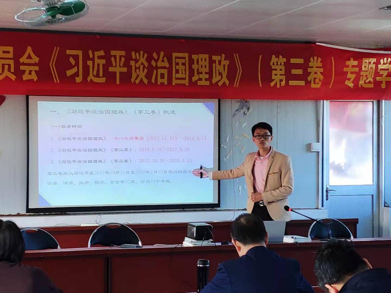 校党委书记苏宁同志主持学习班,并领学“自觉承担新形势下宣传思想工作的历史使命”。从学习领会习近平总书记谈宣传思想工作,新形势下宣传工作的历史使命,以及如何做好宣传思想工作等三个方面深入解读了相关内容。党委副书记郭银华同志结合个人学习体会,深入阐述《习近平谈治国理政》第三卷的重要意义,并结合学习内容对全体党员干部提出修身笃学实诚,工作脚踏实地和强化对党的责任的具体要求。党委副书记、纪委书记王锦秀同志围绕“增强推进党的政治建设的自觉性和坚定性”,从党员发展和党员队伍教育管理以及个人党性修养锤炼方面进行深入解读。
