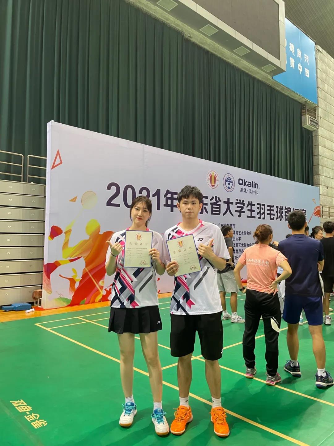 在刚刚落下帷幕的2021年广东省大学生羽毛球比赛中,我校羽毛球队不畏强敌,冲出重围,发挥敢打敢拼的精神,最终获得本次大赛团体总分二等奖;18级工商管理系蔡锦涛、18级经济与金融系刘沁桐获得广东省大学生羽毛球锦标赛男女混双季军,19级国际学院傅诩恩荣获第五名;指导教练吴志侠、文陵桃获优秀教练员称号。