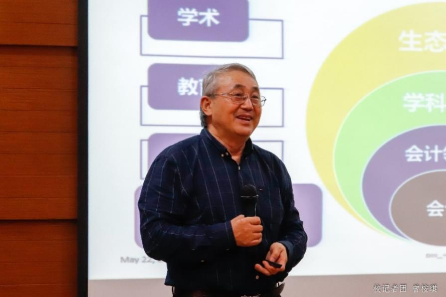 中央财经大学袁淳教授作了主题为“数智驱动下会计学研究内涵与外延的思考”的报告。他结合自身经历,依托会计专业当前的学科建设及就业情况,通过最近流行的网络热议词——“内卷”引出会计学研究所存在的“无益的精益求精”、“将简化繁”等问题。他提到,若要避免会计学研究的“内卷”,应该认真分析现存的问题,考虑社会生活的所思所想,增强学科之间的交流,学会交叉研究,发挥会计学对于微观现象和企业行为理解的优势。随后他从多个方面提出会计学研究应跟上时代发展的潮流,不断融入新思路、新方法,实现多元化拓展,以适应社会发展的需要。