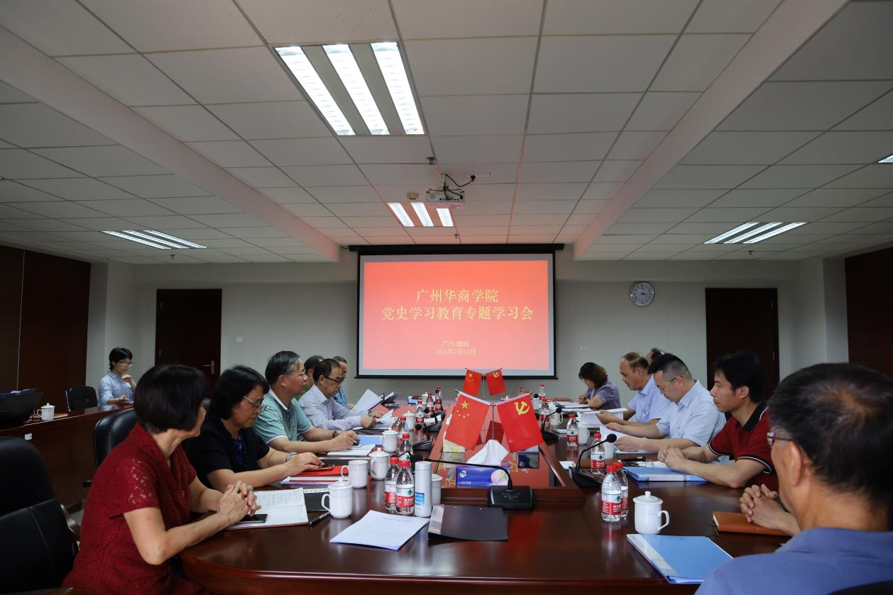 7月13日下午,广州华商学院党史学习教育专题学习会在行政楼513会议室召开,会议主题为学习与弘扬伟大建党精神。学校校领导及校长助理参加了会议。会议由党委书记苏宁同志主持。