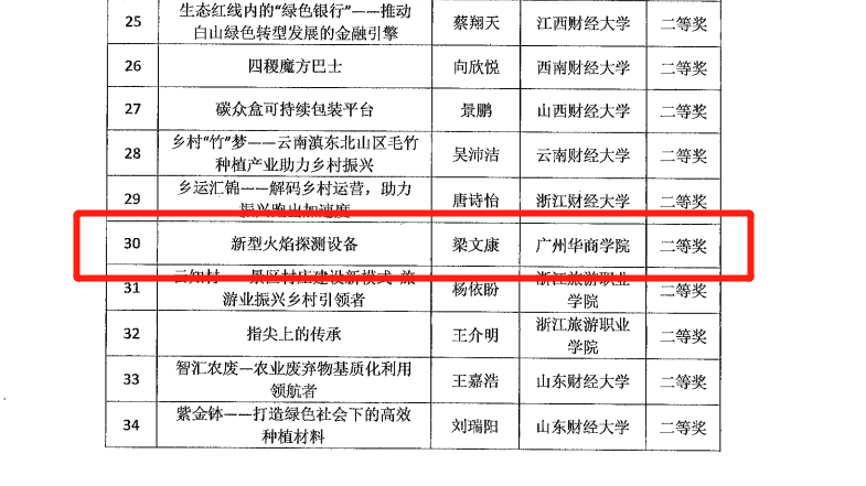 9月25日,第六届全国财经院校创新创业大赛总决赛在吉林财经大学举行,经过激烈角逐,广州华商学院《新型火焰探测设备》项目荣获总决赛二等奖。
