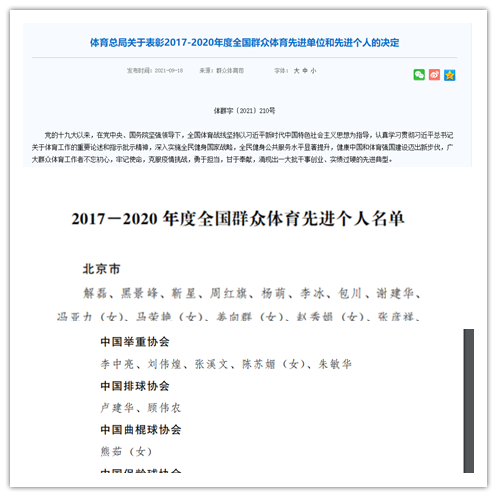 顾伟农教授获奖后表示:“这是我从事体育行业40多年来的一次重大荣誉,更是对我的鼓舞和鞭策。今后我将继续努力,发扬体育教育功能、排球文化、体育信念和匠人精神,将群众体育洒向祖国的多个角落。”
