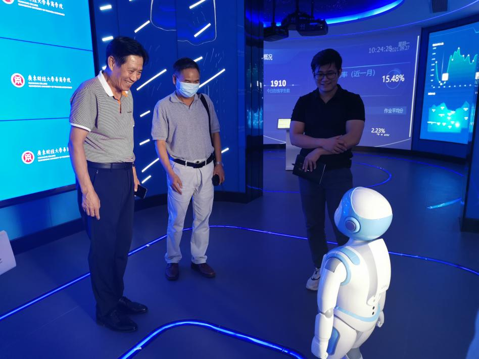会议结束后,李新旺教授参观了我校大数据与人工智能实验教学平台及大传播实验教学平台。李教授表示我校在实验设施设备的投入高于其他学校,在大数据与人工智能方面的突破和人才培养模式值得学习和借鉴,同时也认为这些实验设施设备可以促进心理学和师范类专业的建设。