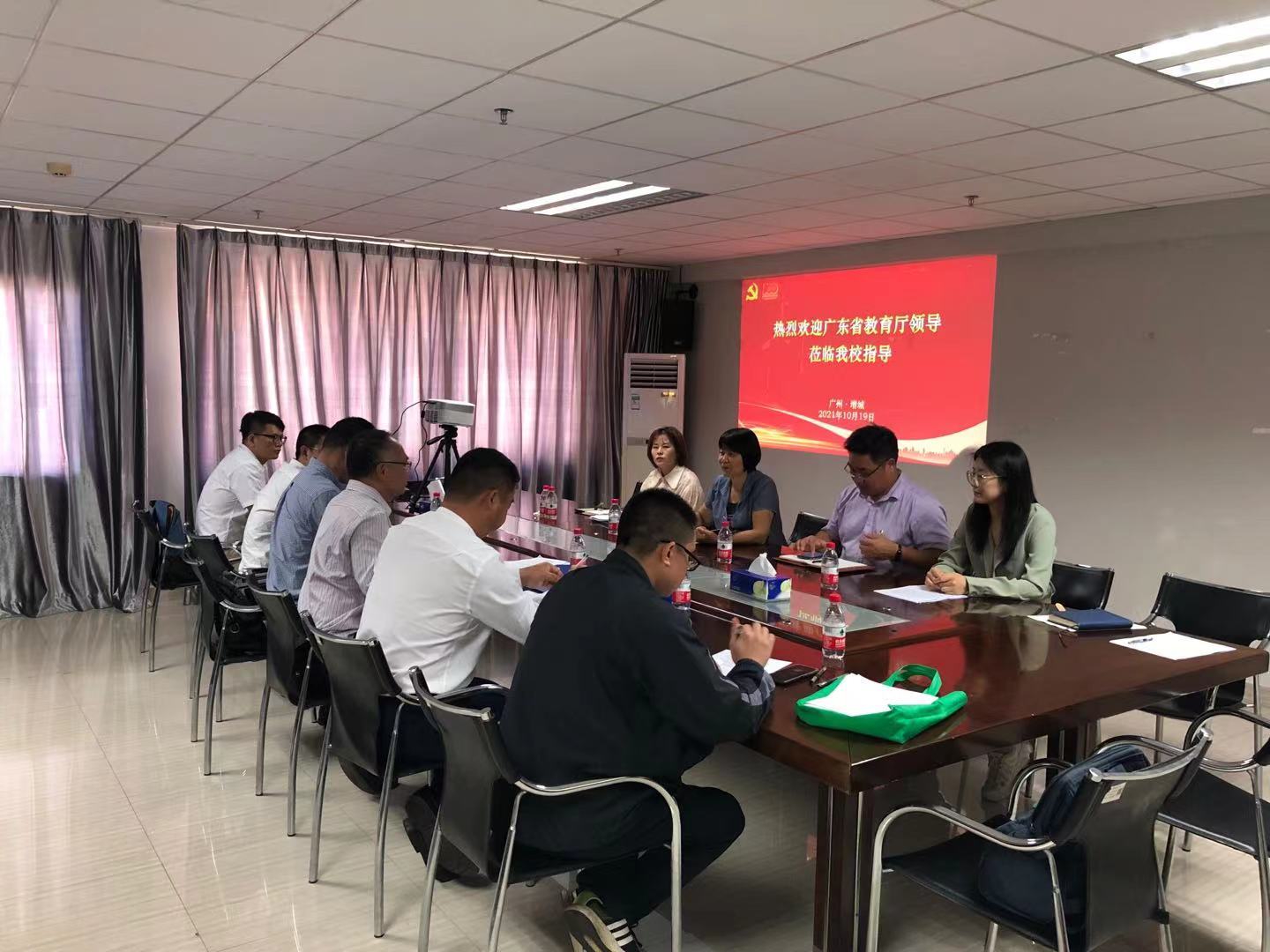 2021年10月19日上午,广东省教育厅体卫艺处副处长张建锋、国防教育教指委秘书长刘广乐、副秘书长昌灯圣、副秘书长彭皓焱等一行赴我校检查、调研国防教育有关工作。