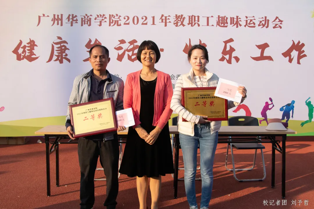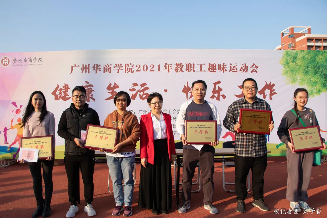 为丰富我校教职工的课余文化生活,促进教职工身心健康发展,营造团结奋进、积极向上的校园氛围,11月30日,广州华商学院2021年教职工趣味运动会在学校田径场举行。党委副书记兼副校长王锦秀、工会主席黄小兰、体育教学部主任顾伟农作为嘉宾出席了本次活动,与全体教职工齐聚田径场,共享运动带来的激情与快乐。