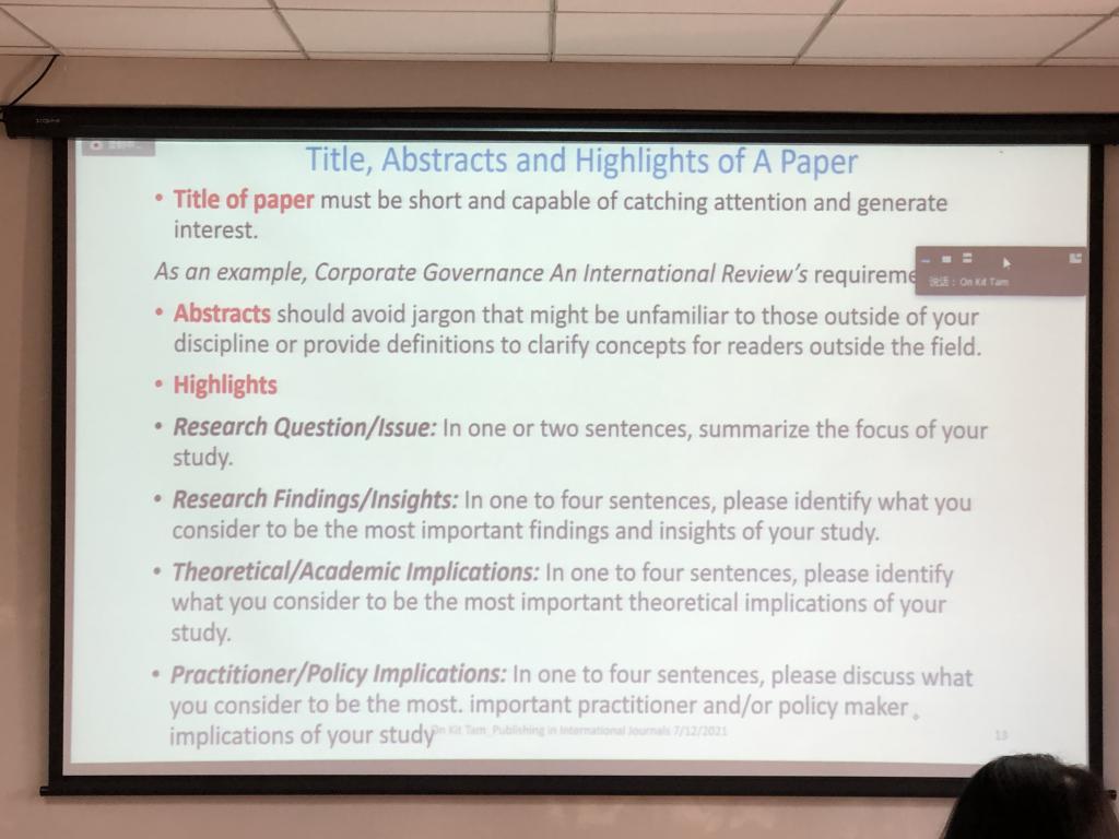 杨处长为本次培训讲座的要点做总结。她感谢谭教授精彩的讲座并希望老师在发表期刊时关注选题并践行相关撰写方法。