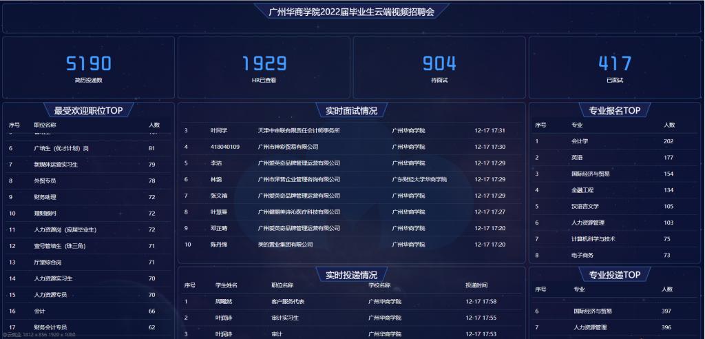 12月17日,广州华商学院在云就业平台圆满成功举办2022届毕业生“华商+云端”招聘会。此次招聘会由广州华商学院主办、毕业生就业指导中心承办、大学生职业发展协会协办,支持单位为广东省人力资源研究会、云就业平台。