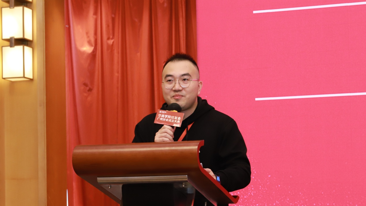 华商教育集团廖榕就董事长致辞,他谨代表学校对出席大会的领导嘉宾和校友们表示诚挚的问候,对华商广州校友会的成立表示热烈的祝贺。同时,他向参会校友简要介绍学校的建设发展情况,并表示学校高度重视校友工作。