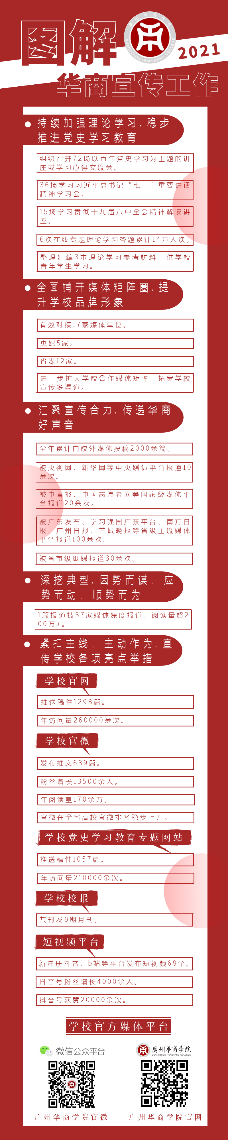 2022年,学校宣传工作将以习近平新时代中国特色社会主义思想为指导,增强“四个意识”、坚定“四个自信”、做到“两个维护”,紧紧围绕迎接、宣传、贯彻党的二十大这条主线,扎实做好宣传思想工作,为促进学校内涵式发展贡献力量!