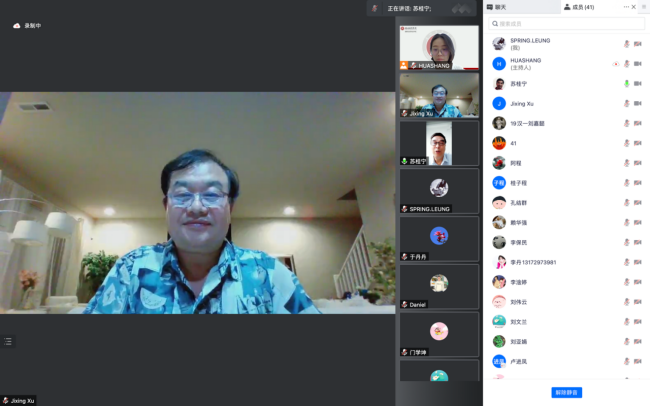 苏桂宁院长做总结发言,他对徐纪兴先生信息详实的讲座及耐心的问题解答表示感谢,他希望各位老师能够把握这次机会,多与海外优秀的汉语教师沟通交流,了解海外汉语教学情况,积极有所为地把我校汉语国际教育专业办好。