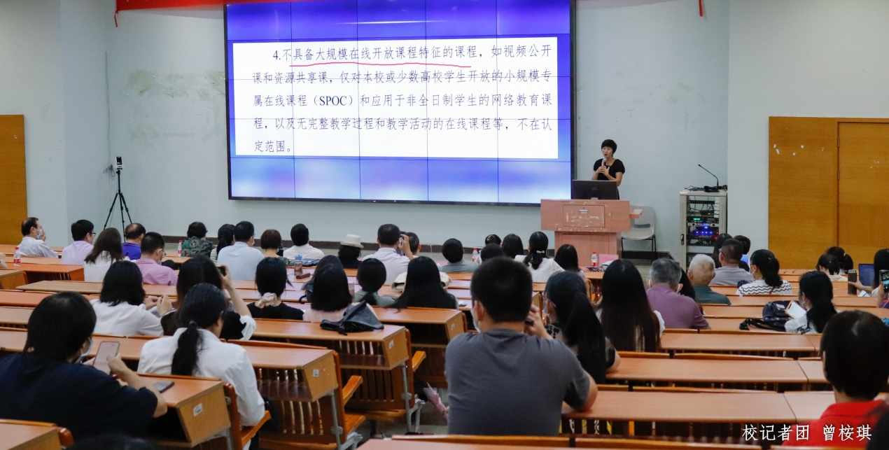 6月14日,教务处联合教师发展中心在增城校区励志楼C408举行我校第1场省级一流课程建设分享会。本次分享会邀请学校获得2021年省级一流课程的刘阳、杨俏文、于丹丹3位老师作经验分享。副校长支戈壁、校长助理李远飞及各二级学院分管一流课程建设的领导出席本次分享会。已获校级一流课程立项、计划申报省级一流课程的教师们莅临现场交流学习。分享会由教务处教研科副科长陈梓哲主持。