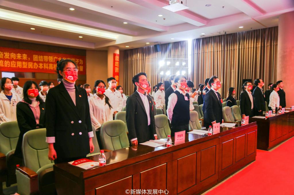 12月3日,广州华商学院第二次学生代表大会在增城校区召开。本次大会严格落实疫情防控相关要求,采取线上、线下结合的形式举办,以增城校区国际会议中心四楼报告厅为主会场,励志楼B207、C408、腾讯会议等共设置五个分会场。四会校区师生线下集体观看直播学习。