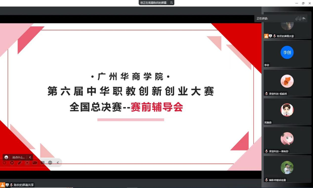 为了进一步帮助参赛团队优化参赛项目、提升参赛团队的路演水平,创新创业学院于2月23日下午4:00,举办第六届中华职业教育创新创业大赛全国总决赛赛前路演辅导会,特邀广州华商学院华商数字化技术与应用研究院院长彭秀东教授为参赛团队进行赛前辅导。