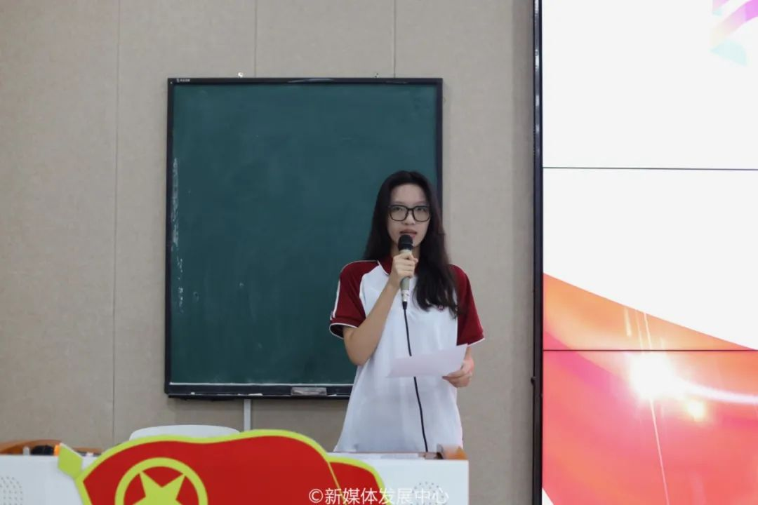 新学员代表郑子懿作表态发言。她表示要珍惜这次宝贵的学习机会,严于律己,在学习中做表率,在生活中当模范,当好党的助手和后备军。并向大家发出三点号召:第一,志存高远,坚定理想信念。我们要认真学习党的先进理论和思想,用党的科学理论武装头脑,在思想中洗礼、在实践锻造中不断增强做中国人的志气、骨气、底气。第二,脚踏实地,坚持学习主线。要珍惜韶华、不负青春,努力学习掌握科学知识,锤炼过硬本领。第三,自觉担责,争当表率模范。党和人民事业发展离不开一代又一代有志青年的拼搏奉献。我们要以青年行动为社会发展做贡献,在学习、工作及其他社会活动中起模范带头作用,让青春在祖国和人民最需要的地方绽放绚丽之花!