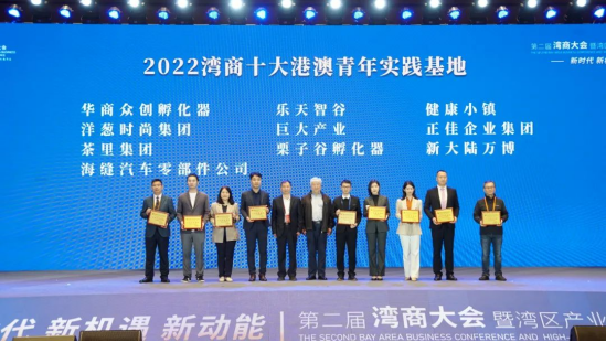 会议发布了2022湾商十大港澳青年实践基地名单,华商众创孵化器获“2022湾商十大港澳青年实践基地”称号。