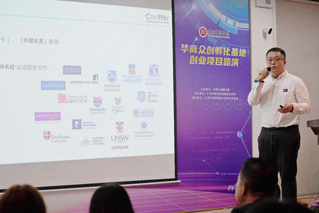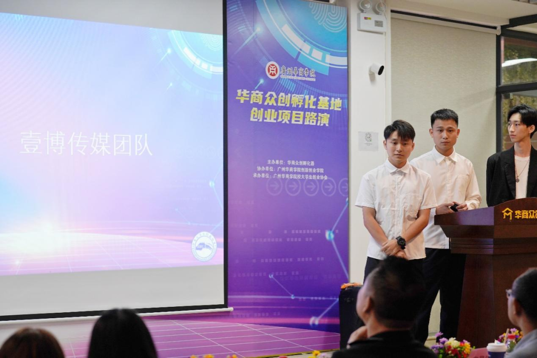 4月4日,2023年华商众创孵化基地项目团队入驻路演在中央图书馆5楼举行。莅临本次路演会的嘉宾有:广东孵客科技孵化集团总裁助理、投资总监路斌先生,华商数字化技术与应用研究院院长彭秀东教授,广州华商学院产教融合办公室唐显锋副主任,广东华商众创孵化器有限公司项目专员罗丽玲女士以及广州华商学院创新创业学院陈欢老师。