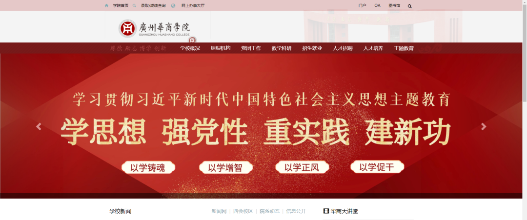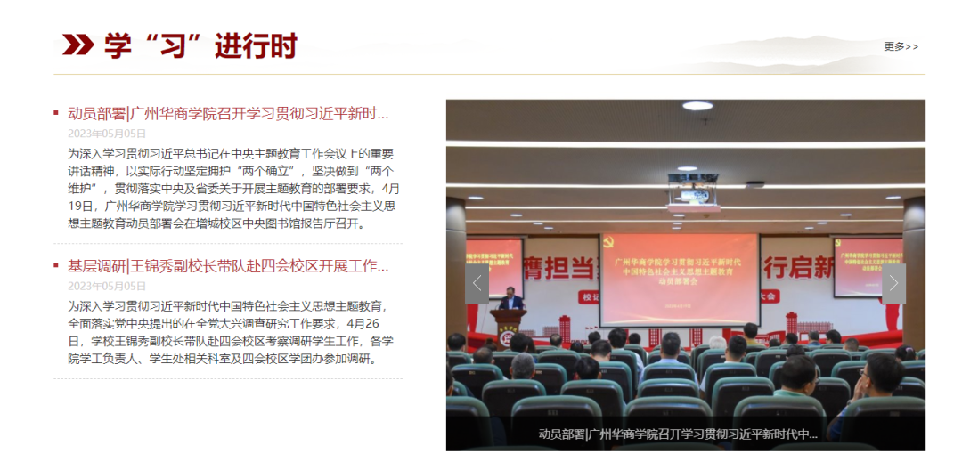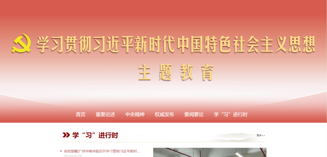 为深入开展学习贯彻习近平新时代中国特色社会主义思想主题教育,引领全校各级党组织和党员干部师生统一思想、统一意志、统一行动,扎实推动主题教育在我校走深走实,由中共广州华商学院委员会学习贯彻习近平新时代中国特色社会主义思想主题教育领导小组办公室指导,学校党委宣传部负责日常运营管理的广州华商学院学习贯彻习近平新时代中国特色社会主义思想主题教育专题网站(访问网址:ztjy.gdhsc.edu.cn)于5月5日正式上线。