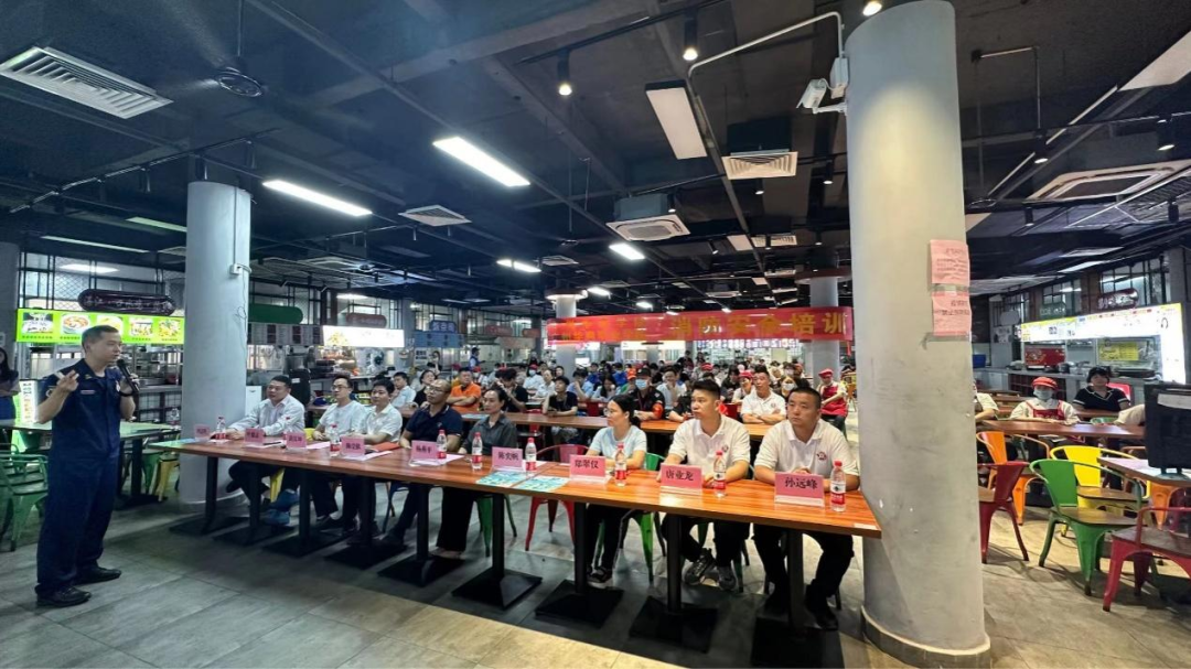 根据《广东省教育厅办公室关于进一步做好学校安全工作》《广东省公安厅关于开展更高水平“安全文明校园”创建考评工作的通知》《广东省校园应急避险和安全防范疏散演练达标单位创建活动方案》等有关文件精神,为一步提升我校食堂商超工作人员的安全意识,增强食堂商超工作人员消防安全隐患防范化解能力,提高自防自救能力,避免消防安全事故发生,切实保障广大师生的生命安全,我校于5月6日下午3:00在华商第五食堂二楼举办消防安全教育培训及宣传讲座。