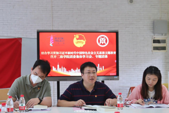 为深入开展学习贯彻习近平新时代中国特色社会主义思想主题教育,深入学习领会习近平总书记给中国农业大学科技小院同学们的重要回信精神,引领我校共青团系统以主题教育为契机,切实用党的创新理论武装头脑、指导实践、推动工作,团结带领我校团员青年走在坚定拥护“两个确立”、坚决做到“两个维护”的最前列,5月12日上午,校团委在启智楼413组织开展理论学习中心组学习贯彻习近平新时代中国特色社会主义思想主题教育集体学习会。校团委书记陈刚,校团委常委、国际学院团委书记杨李军,校团委专职团干以及二级学院团委书记、副书记参加本次会议。