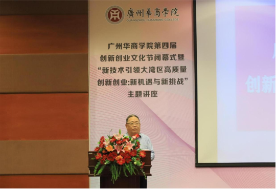 为深入学习贯彻党的二十大精神,扎实开展学习贯彻习近平新时代中国特色社会主义思想主题教育,进一步推进我校大学生创新创业教育工作,增强学生的创新创业意识,营造浓厚的“想创业、敢创业、能创业、创成业”的文化氛围,激发师生参与创新创业的热情,2023年5月16日下午,广州华商学院第四届创新创业文化节闭幕式暨“新技术引领大湾区高质量创新创业:新机遇与新挑战”主题讲座在会议中心四楼报告厅顺利举行。