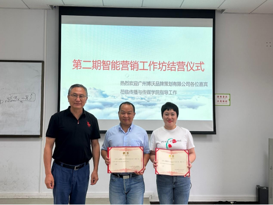 5月16日,广州华商学院传播与传媒学院与博沃品牌策划有限公司共同举办的校企合作项目——智能营销创意工作坊(二期)正式收官结业。由于疫情的影响,工作坊延期到本学期结束,传播与传媒学院王健副院长、广告系主任李苗以及赵安琪老师等,出席了结业仪式。21本广告学(智能营销传播方向)3班和20本广告学(专升本)1班部分同学参加了此次结业仪式,聆听了陈丹萍女士具有前瞻性的专题讲座《共生还是作战?---ChatGPT带给广告行业的新命题》。