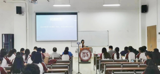 李彩芳校长强调,要把“以德树人”作为首要基本功。讲座上,李彩芳校长带领在座师生深入学习习近平总书记在全国教育大会上的重要讲话,并引用人民教育家于漪老师的“立德树人是中国教师的第一基本功”启示学生,要将立德树人聚焦到教育教学活动中。