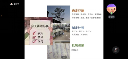 司徒彬同学从政治、英语专业课备考方面,分享了复习中的学习方法,给学弟学妹们推荐了一些复习资料提供参考;并且他结合自身经历给正在备考的学弟学妹们鼓励——“考研之路充满很多的艰辛和不易,但是我们要相信一定会苦尽甘来,学会坚持,才会成为自己想要成为的人。”