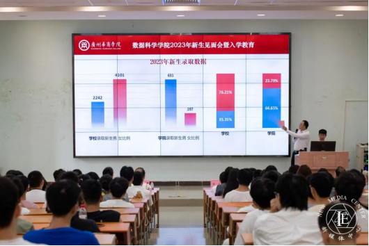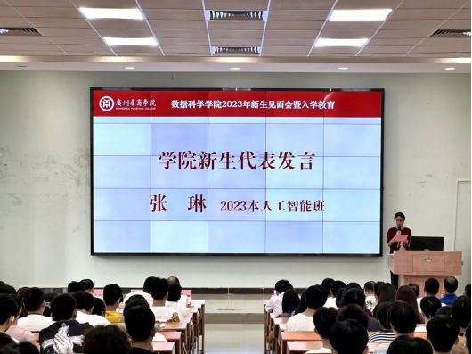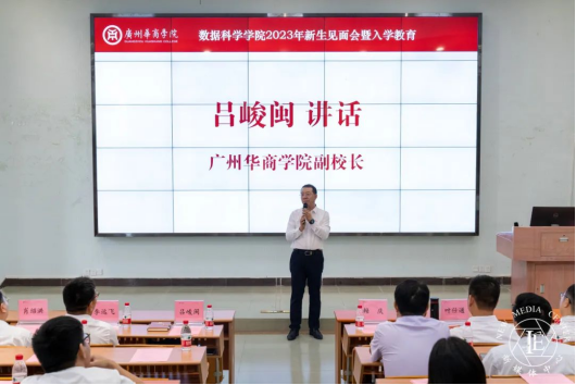 9月12日下午,广州华商学院数据科学学院于增城校区励志楼C408举行学院2023年新生见面会,同时设置10余个分会场进行同步直播。广州华商学院副校长、数据科学学院院长吕峻闽,学院常务副院长赖庆,校长助理、学院副院长李远飞,学院副院长叶仕通,院长助理杨波,专业负责人与系主任及全体行政教辅老师出席了本次新生见面会。会议由学院党委副书记、学院副院长蒋大锐主持。