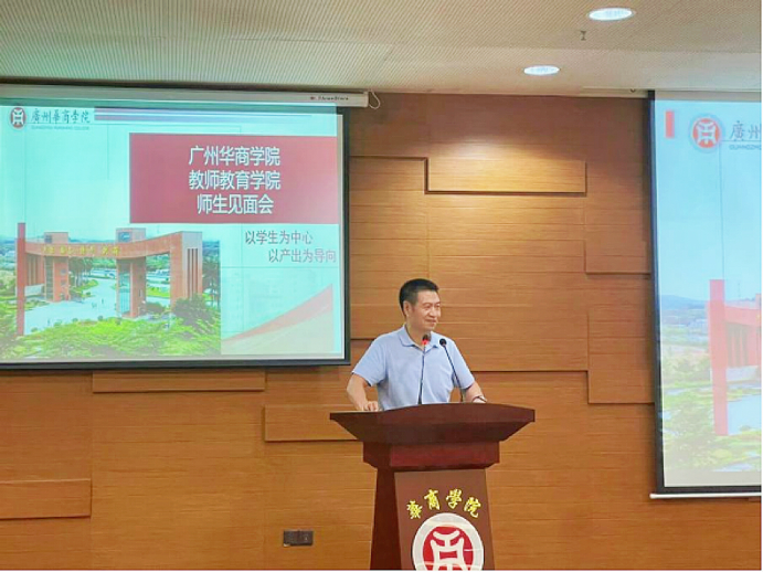 2023年9月5日15时,广州华商学院教师教育学院在增城校区图书馆报告厅举行2023年专升本师生见面会。出席本次师生见面会的领导嘉宾有:教师教育学院名誉院长扈中平教授、教师教育学院院长王金道教授、副院长张博教授、副院长谭建生教授、小学教育系主任王符教授、小学教育系专业负责人李志厚教授、院长助理安洁博士、三办一中心主任、各系部主任、新生辅导员及班主任、学前教育系全体教师。会议由学前教育系副主任张会会老师主持。