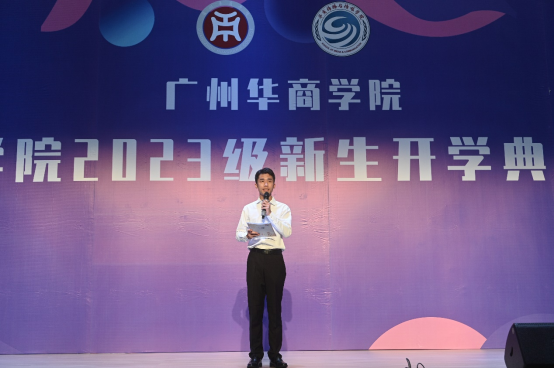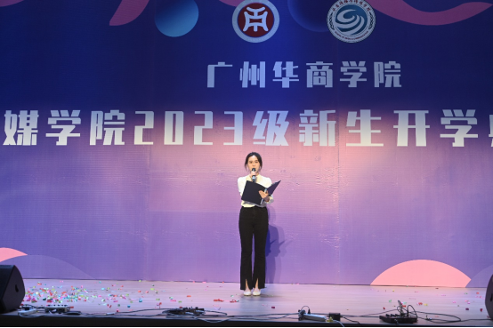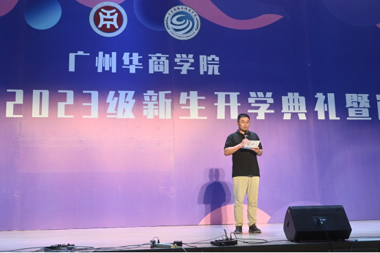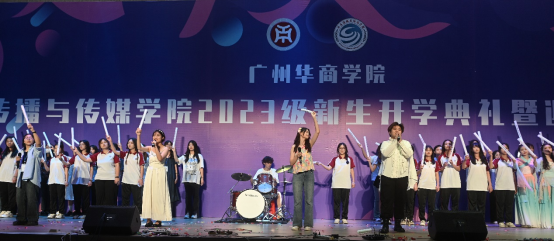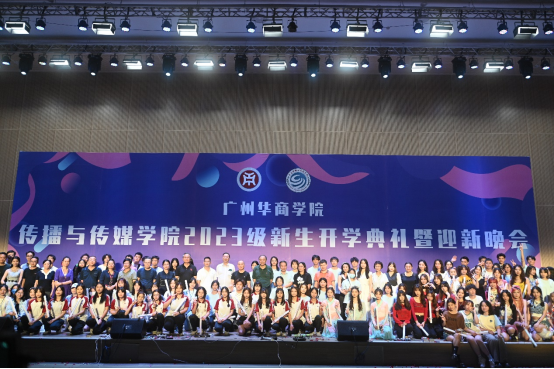 韶华不负新启程,青春作笔书华章。我们带着憧憬,怀揣梦想,相聚在这美好的夜晚。9月21日晚,传播与传媒学院2023级新生开学典礼暨迎新晚会于2号楼报告厅顺利举行。出席本次活动的领导嘉宾有:广州华商学院副校长兼人文学部主任王列耀、广州华商学院副校长兼四会校区管理委员会主任王卫平、四会校区管理委员会常务副主任覃少冰、人文学部副主任陈晔、教学督导办副主任兼四会校区教师发展中心主任王柏新、四会校区管理委员会副主任兼教务处副处长段晓聪、四会校区会议中心客房主管莫富丹、传播与传媒学院院长赵维江、党委书记倪列怀、副院长王健、副院长林绍忠、各系主任及教师代表。