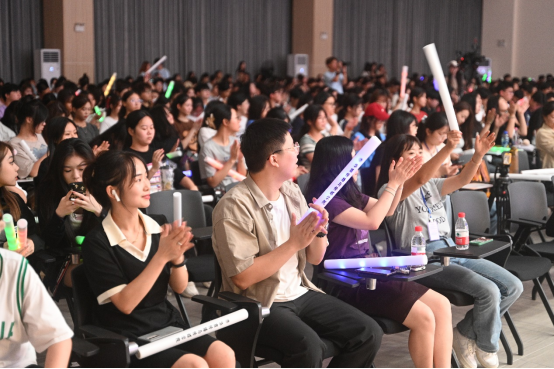 这是一份新学期的礼物,也是一份新征程的期许。愿同学们能不待扬鞭自奋蹄,勇敢逐梦向未来,尽情绽放青春之光。整场晚会,亮点纷呈,热情洋溢,荧光棒在手中挥舞,欢呼声响彻整个报告厅。