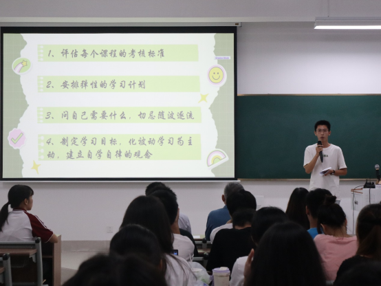 为了让大一新生更好地了解大学生活,掌握大学的学习规律,明确大学学习目标,积极调整自身状态,正确处理学习、工作、生活之间的关系,展现自身才华,成为更好的自己。管理学院于9月27日晚在16号楼211教室举办学习经验交流分享会,增进新老生间的交流。管理学院副院长秦陇一教授、教学秘书梁林海老师、辅导员魏巍老师、大二学生代表及大一全体新生参与了交流会。