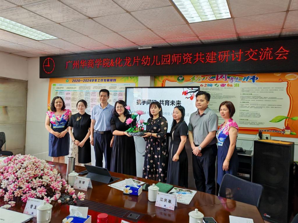 研讨交流会后,化龙片区幼儿园为我校赠送纪念品,双方代表合影留念。