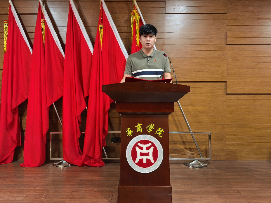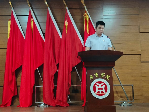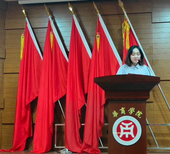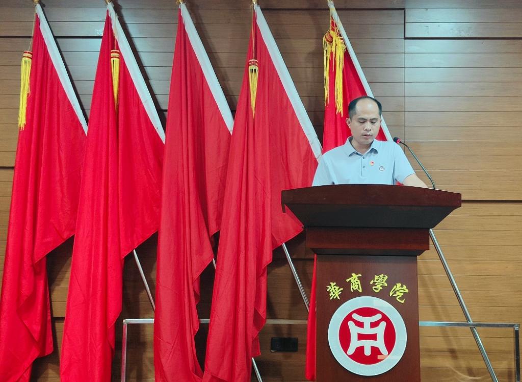 广州华商学院纪委委员、纪检办主任、党办副主任黄秋铭同志代表中共广州华商学院委员会宣读《关于同意召开中国共产党3044am永利集团3044noc党员大会的批复》。