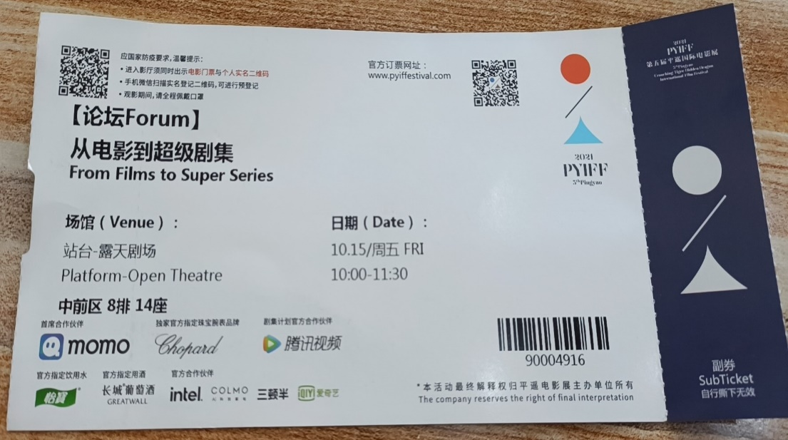 图8:论坛《从电影到超级剧集》学术票据